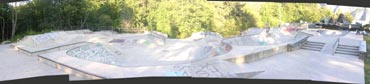 The snake-run/bowl was a little tight for streetboarders, throwing you back up before you had almost finished dropping in, but the curved shape provided a continuously varying width, which helped alleviate the problem - and had a large vert wall at the end of the elbow. It had loads of blocks of various heights and many different levels and bowled sections to move between - there was so much potential here, it was almost difficult to know where to begin...